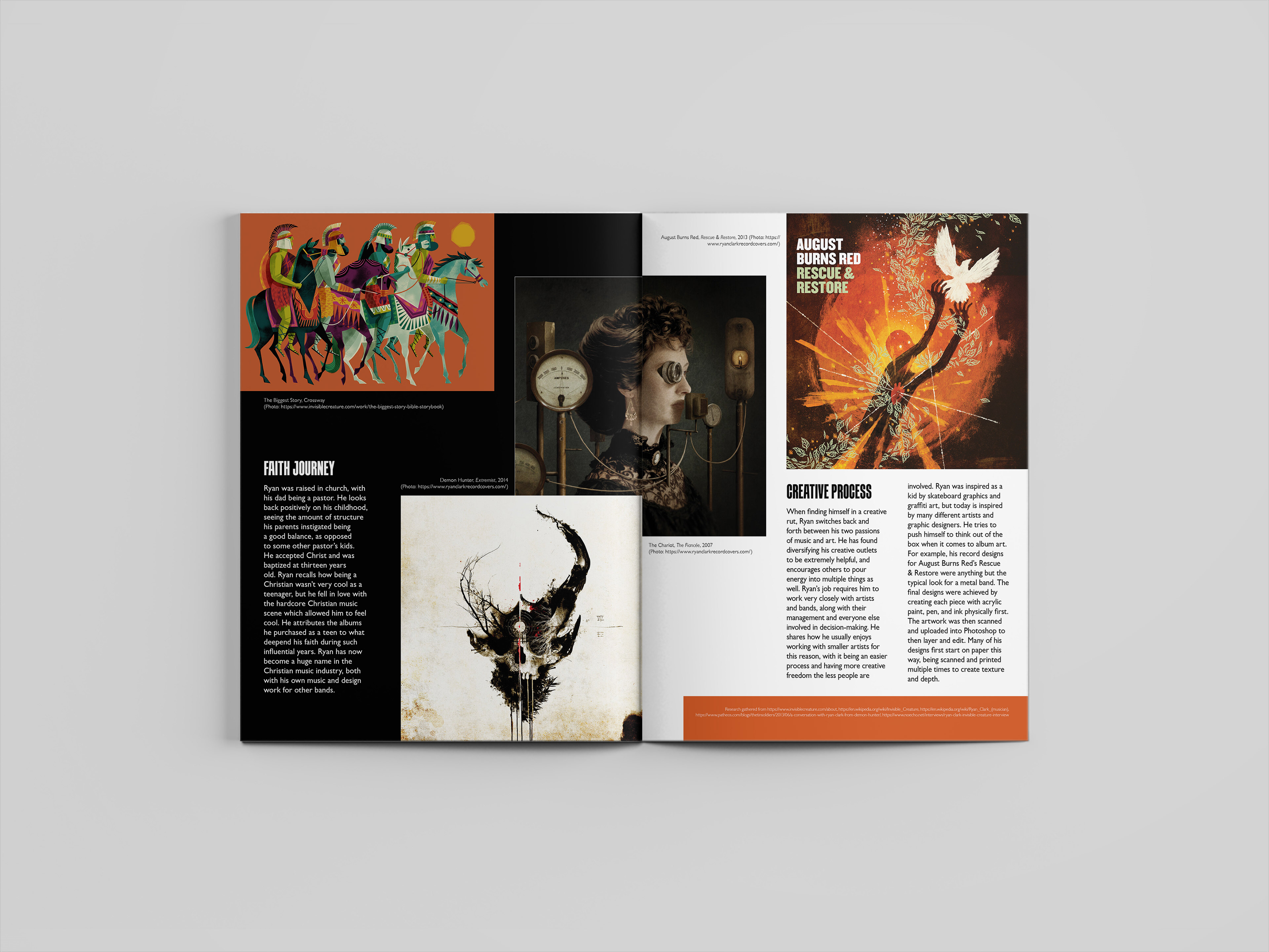 This 4-page spread was a college assignment, focusing on an inspirational graphic designer in the field today.