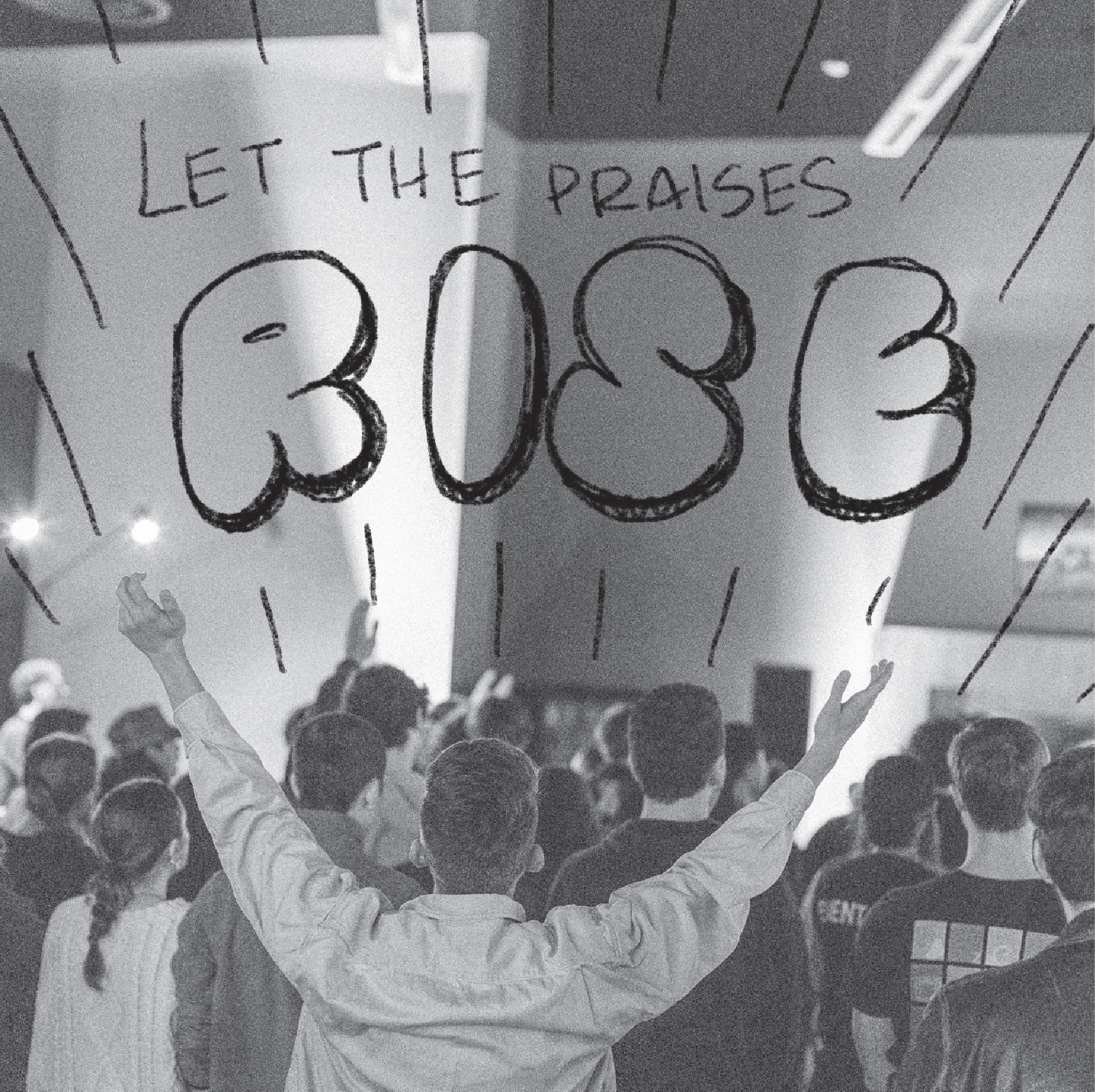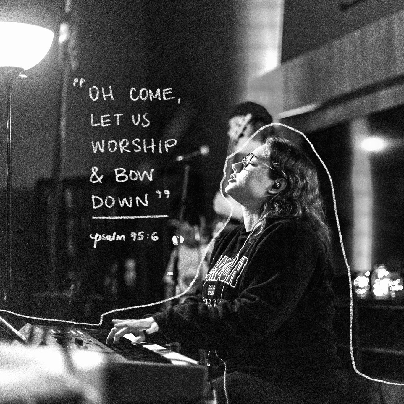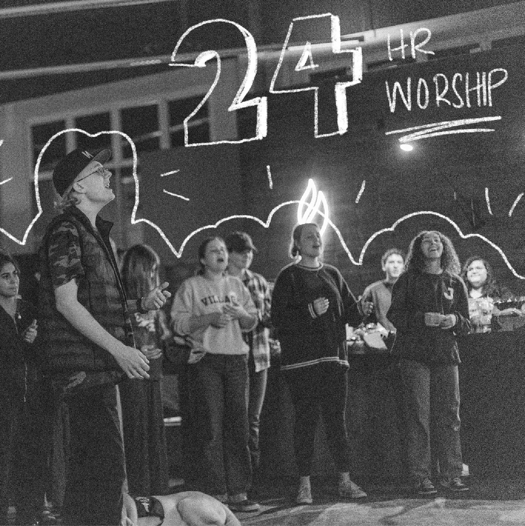 Hand-drawn graphics on photos taken at worship event, posted to Jessup University's Instagram page.