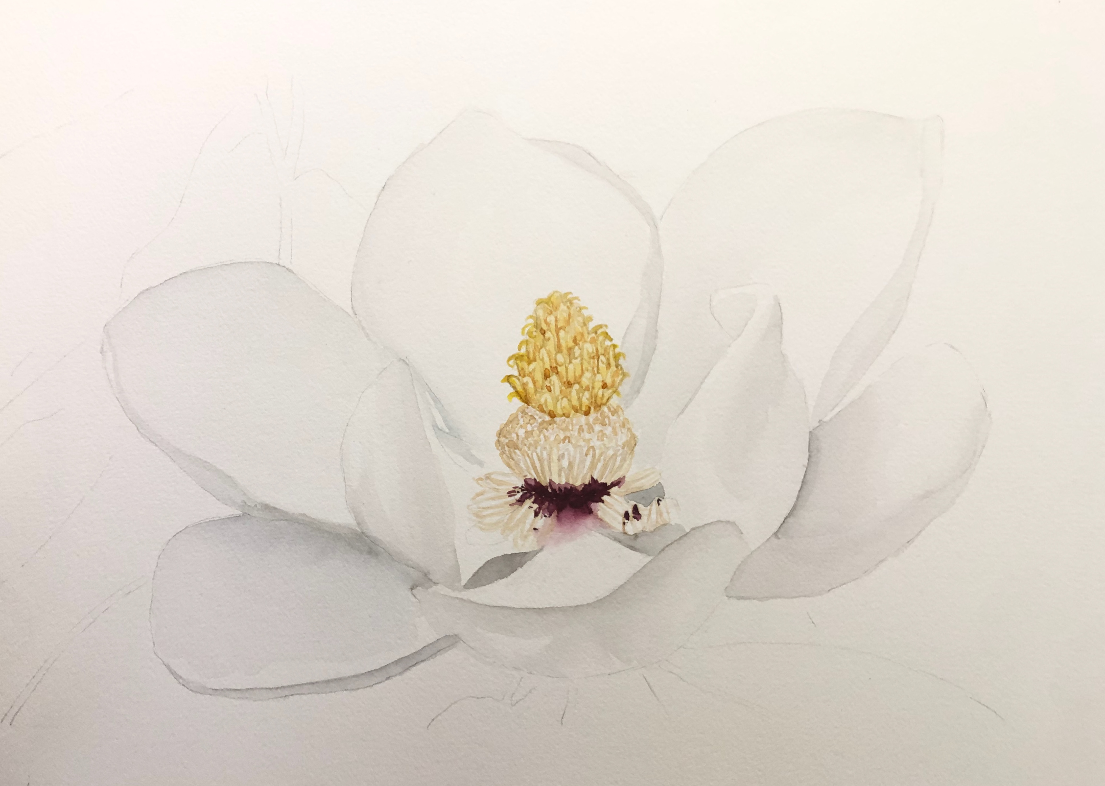 This piece was completed in my very favorite watercolor class, in which the professor challenged me to conquer my fear of painting white.
