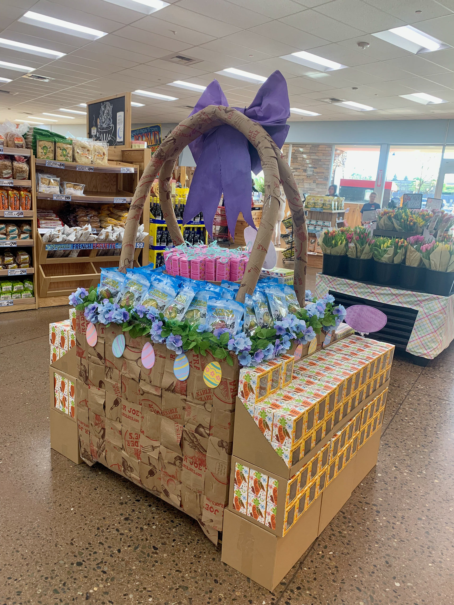 This project was a collaborative effort, and the parts I focused on were the bow, eggs, and general vision. The display was made from leftover muslin fabric, paper bags, pool noodles, and digitally illustrated Easter eggs.